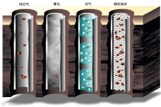 气体钻井技术是欠平衡钻井技术的一种,是指钻井过程中循环介质为气体,它包括干空气钻井、天然气钻井、惰性气体钻井、废气钻井(如柴油机尾气钻井)等。广义上说,气体钻井根据循环介质的不同可分为空气钻井、氮气钻井、雾化钻井、泡沫钻井和充气钻井等(如下图所示)。气体钻井技术相对于常规钻井,以其机械钻速快、成本低、保护和发现储层、减少或避免井漏等优势在加快油气田勘探开发速度方面发挥着重要作用。