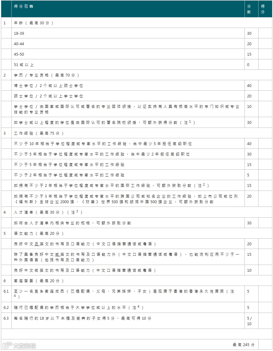2023年香港优才计划的具体申请条件及打分细则如下: