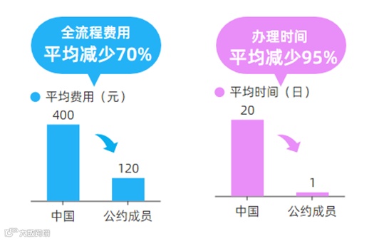 加入《海牙公约》后,简便的一步式证明手续取代了传统认证链,大大简化了办证程序,降低了办证费用。文书加贴附加证明书后,无需其他认证手续即可在《海牙公约》成员之间流转。