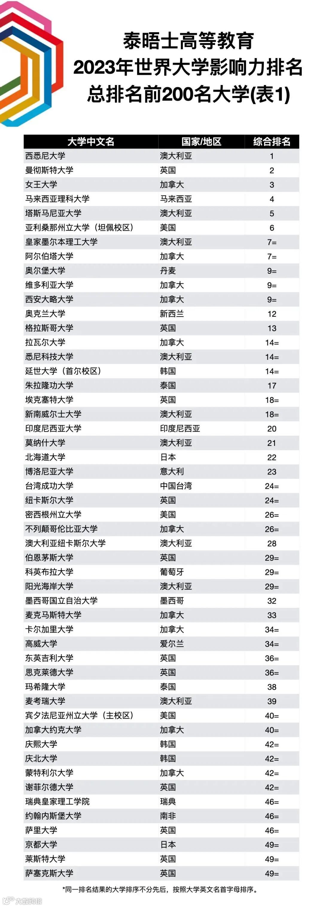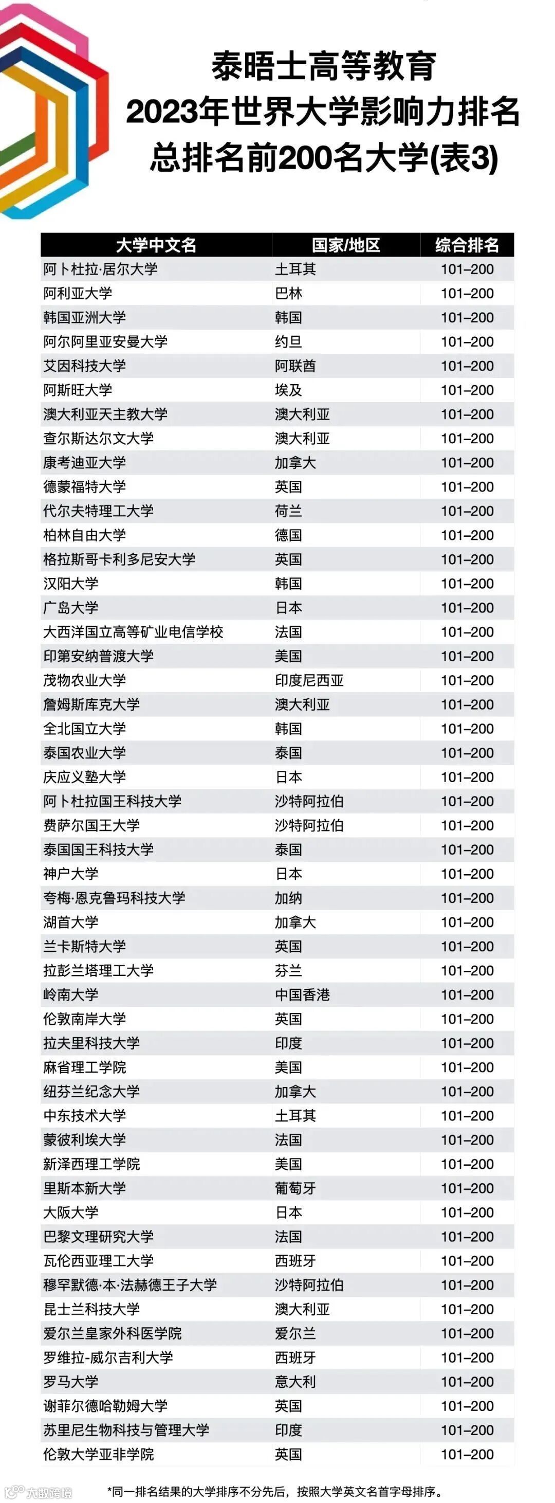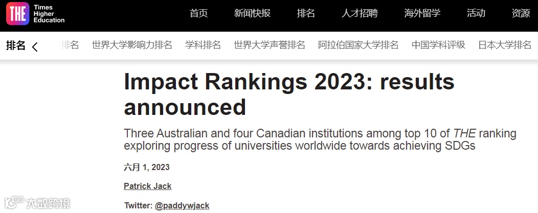 昨日,泰晤士高等教育(THE)发布了2023泰晤士高等教育世界大学影响力排名!