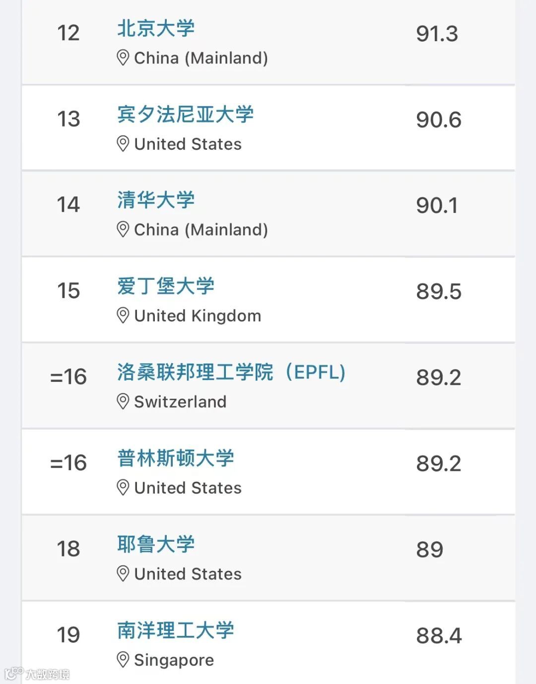 北京大学攀升至世界第12位,亚洲第二,中国首位。