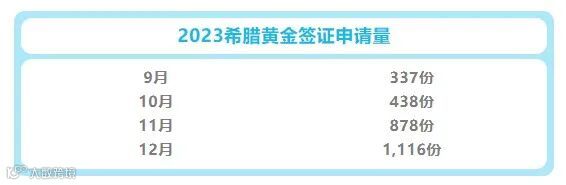 2022年最后一个月,希腊当局收到“黄金签证”申请数量达1,116份,远高于同年9月的337份(新政策宣布当月),增幅达到231%。