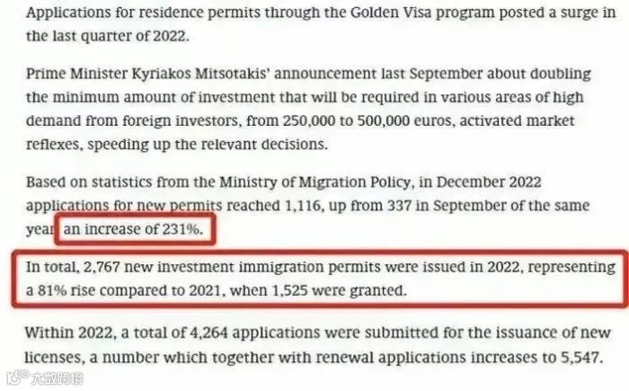 其实在2022年第四季度希腊“黄金签证”的申请已经出现了激增,中国买家首当其冲!