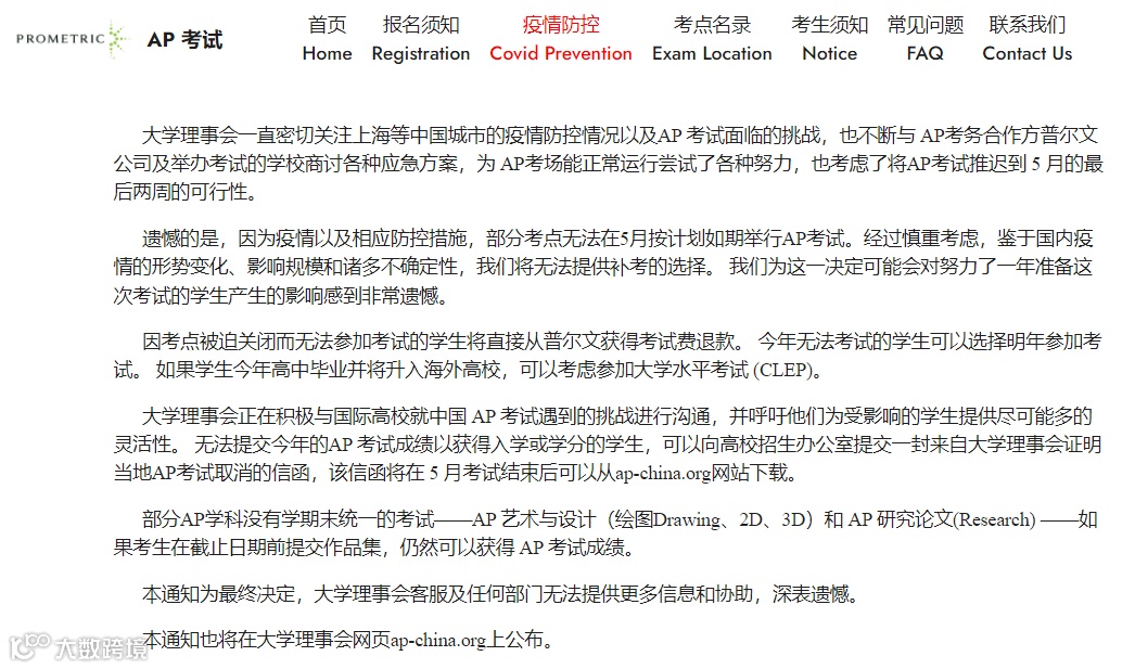 大学理事会和普尔文公司关于当前疫情对5月份AP考试影响的联合公告