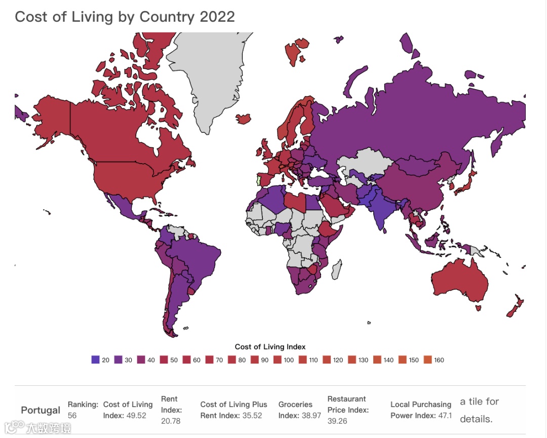 《英国卫报》根据欧盟统计局数据进行过一次以“100欧元购买力”为对象的调查,调查结果显示,葡萄牙是欧元区内欧元购买力最高、即物价水平最低的国家之一!