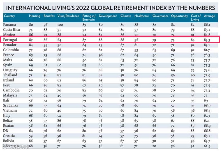 International Living 公布了2022年全世界最适合养老目的地排行榜,葡萄牙排名NO.4。