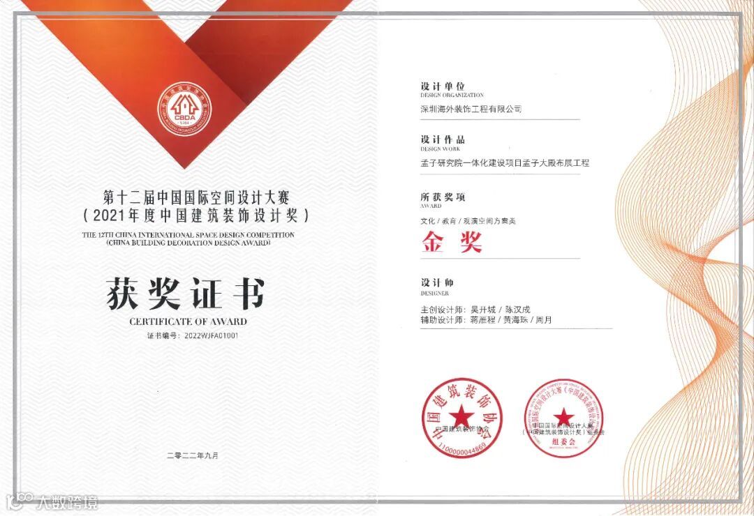 在本次大赛中,我司作品在此次大赛中荣获文化教育观演空间金奖以及办公空间银奖。