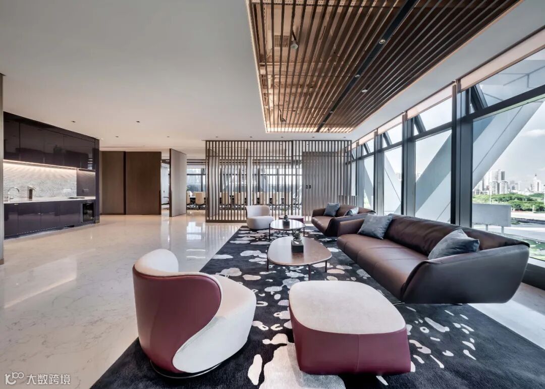 此次设计延续建筑空间多层次、通透的特点,聚焦人与中国古代哲学五行在现代中的表达方式,借以阳光、风、植物和水等自然元素的多重关联来塑造空间的层次及可能性,自下而上,从局部到整体,以小见大的从中孕育服务空间的新内容与新形式。设计师对传统的金融服务空间进行了反思,创造出了一套轻盈、灵动而同质的空间语言,将其作为与传统和颠覆性金融服务保持竞争优势的一种方式。