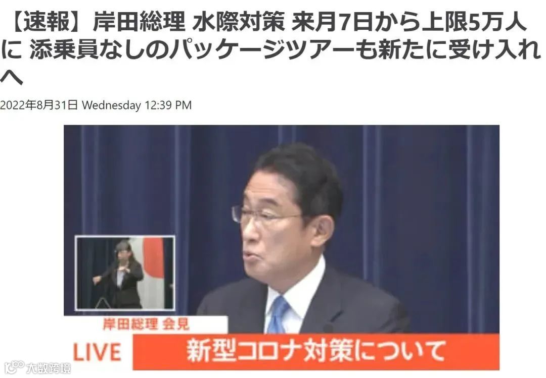 ✦ 根据计划日本将从9月7日零点起调整单日入境人数的上限从目前的2万人上调至5万人;