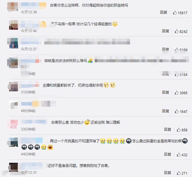 还有网友说,网红明星偷税漏税要封杀,古茗要不要封杀?