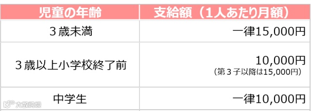 ♦ 小学毕业~15岁:一律10000日元,家里的孩子越多津贴也越多。