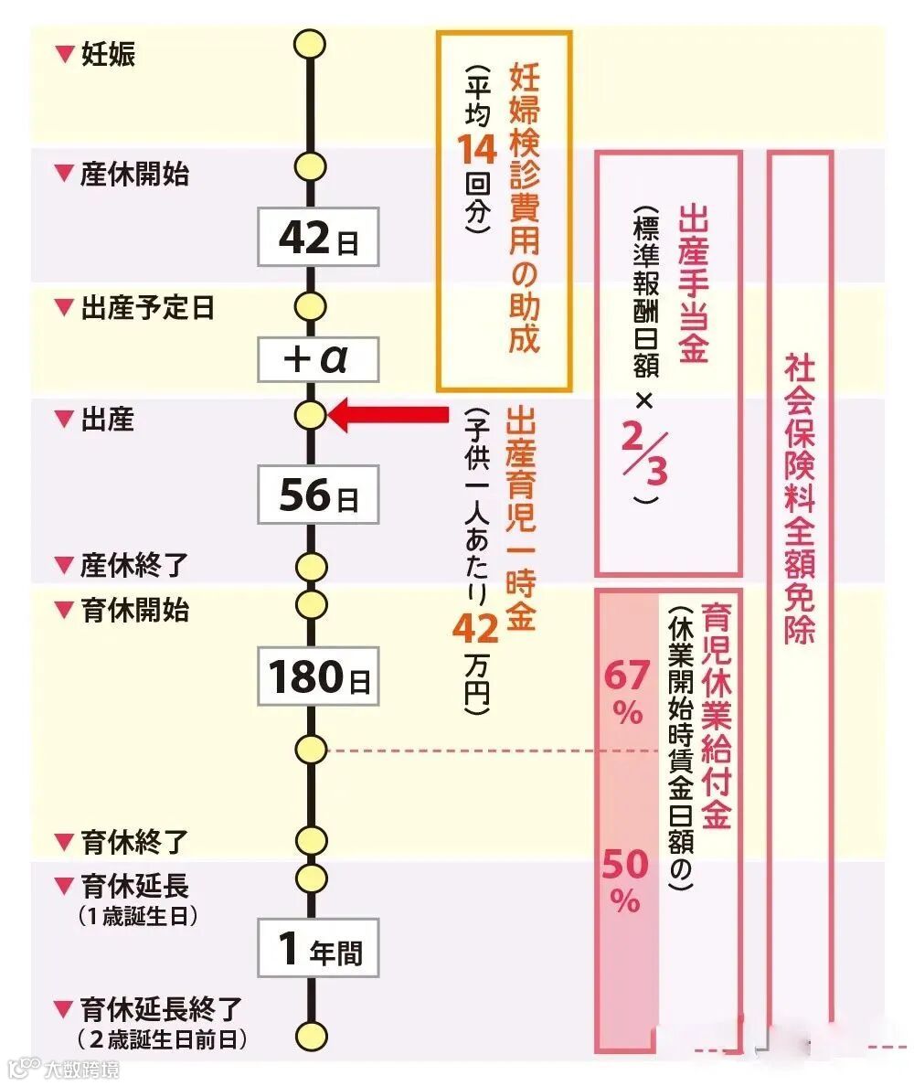 日本妈妈确诊怀孕四个月以上,无论小孩是否平安出生,都可以领到42万日元的补助。从怀孕开始到育儿都有一系列的补贴,孕期可以凭孕检券免费参加14次产检。