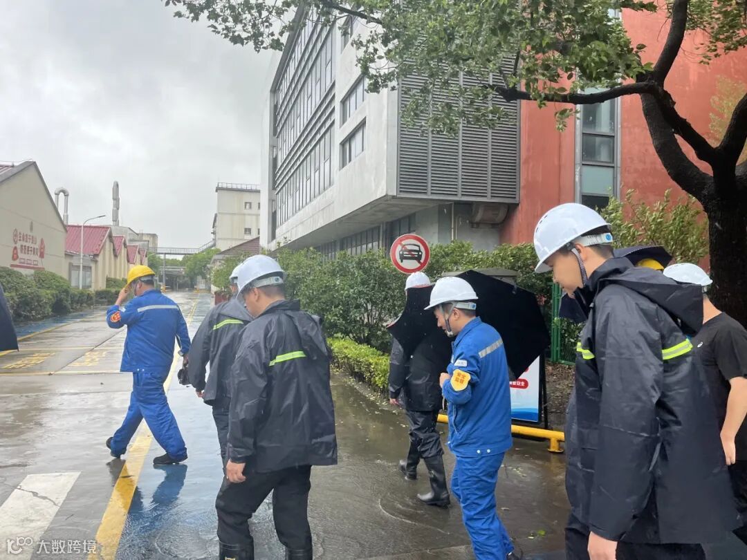 在台风来临前,昆山公司对全体员工及时进行风险预警推送,对相关值守人员进行安全知识培训,明确避险地点和应急联系方式;对公司门窗、室外储罐和危险源储存设施,进行全面检查加固;对排水系统进行检查,确保排水系统畅通;对重要设备进行防水防潮处理,做好应急物资储备。