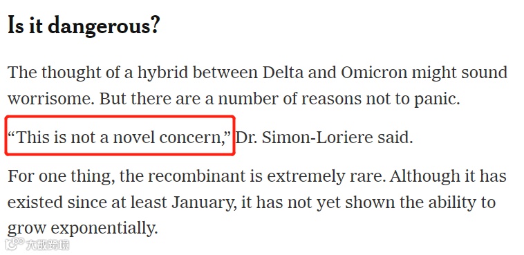 据《纽约时报》报道,巴黎巴斯德研究所的病毒学家西蒙·洛里尔(Simon-Loriere )博士在接受采访,被问到人类是否需要担心Deltacron时,就表示不要惊慌: