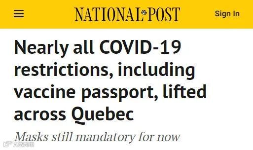 从今天开始,魁北克省取消了几乎所有的新冠防疫限制。
