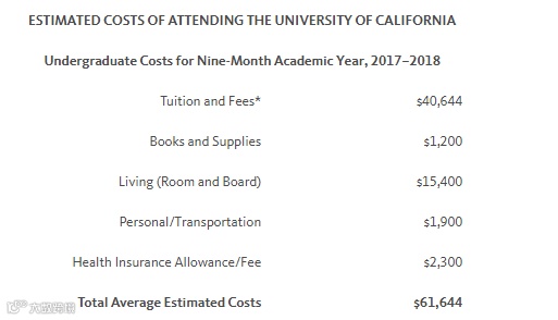 (加州大学官网上给的国际生预估费用,约6.2万美元九个月)