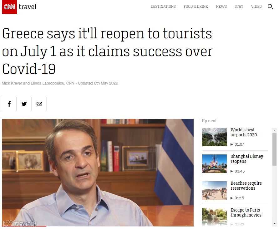 解封进展顺利,据CNN报道,“抗疫模范生”希腊有望于7月1日全面恢复旅游市场。