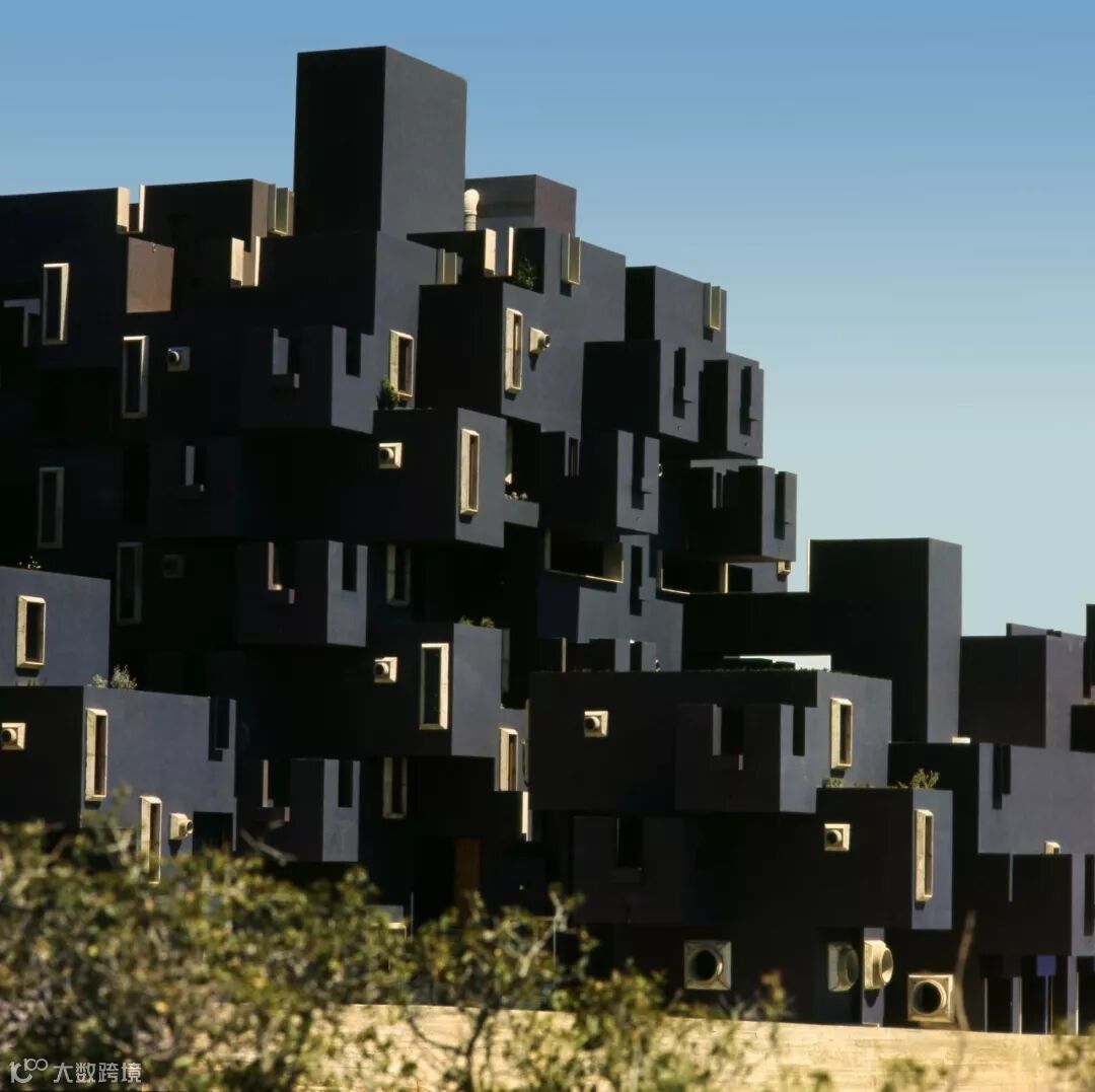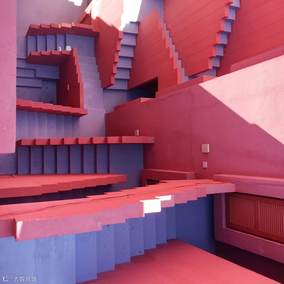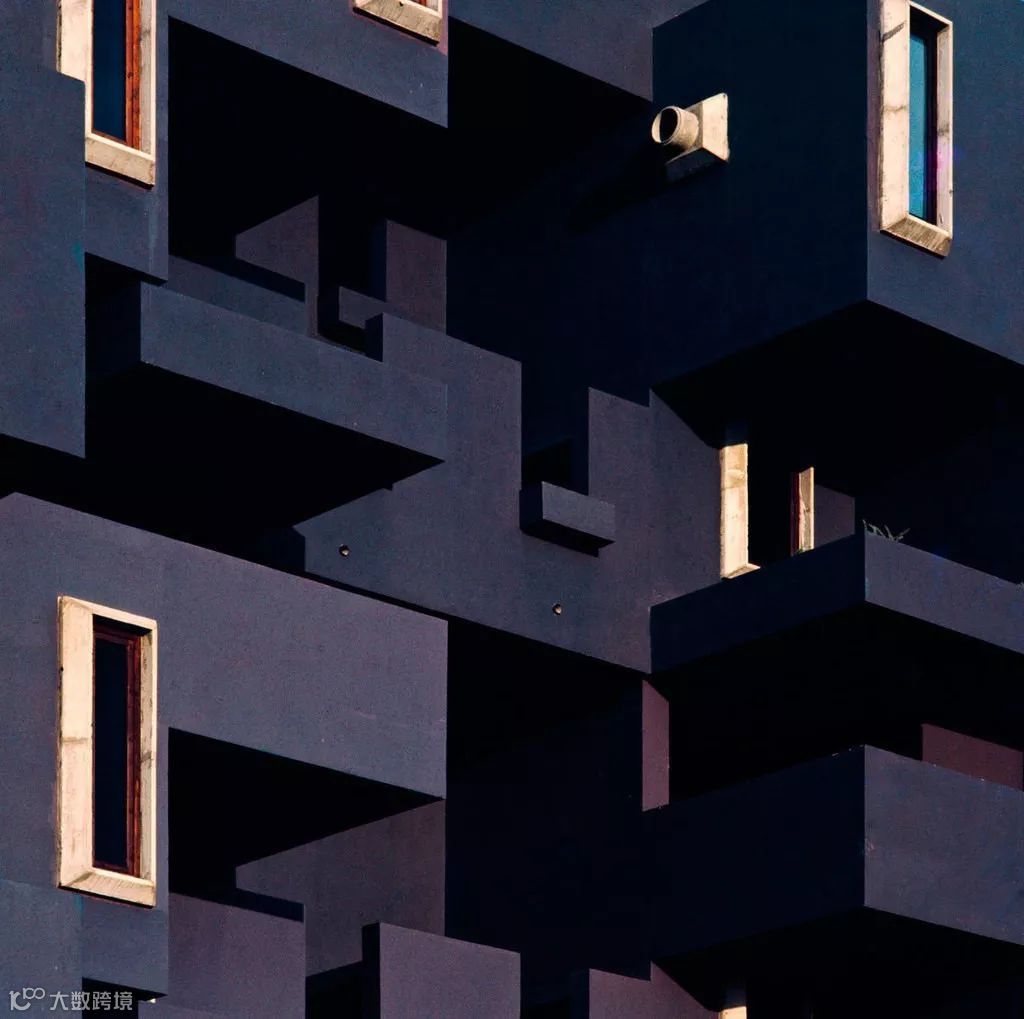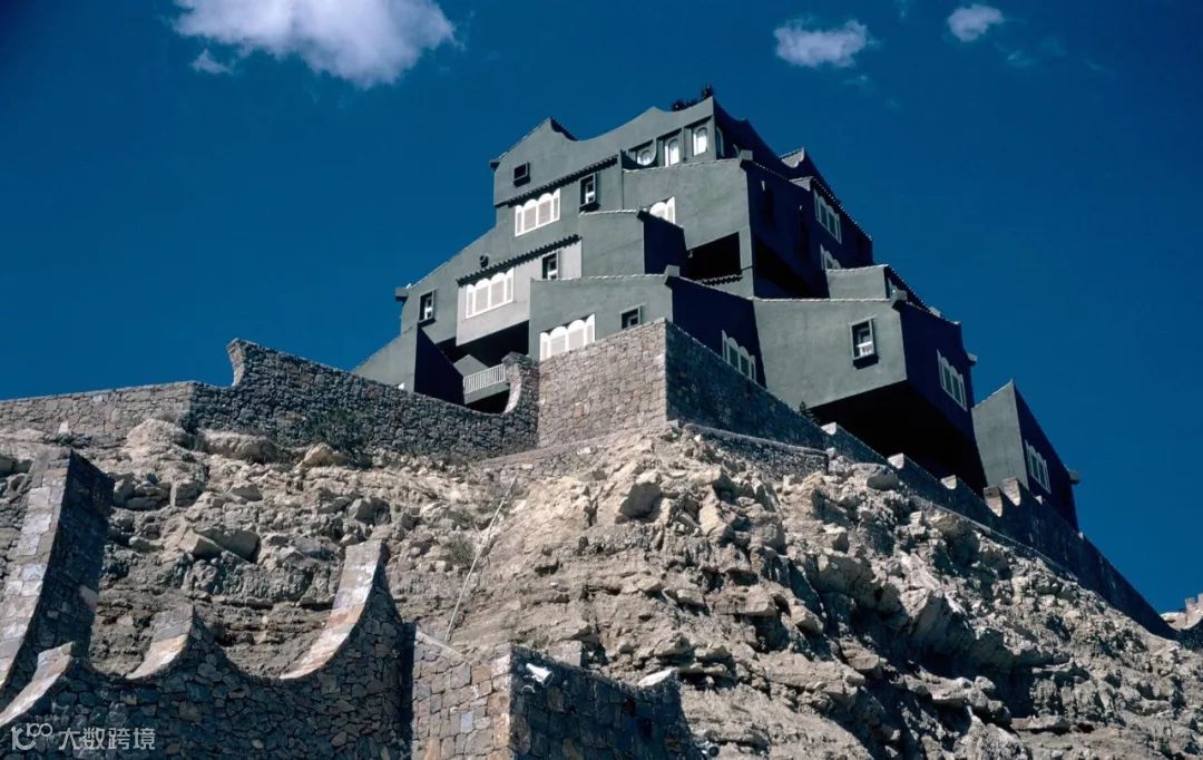 坐落于巴塞罗那郊外的 Sant Pere de Ribes 小镇,“卡夫卡城堡”是 Bofill 对 Franz Kakfa 的超现实主义致敬。这栋公寓楼建于1968年,耸立在山坡上,俯瞰着西斯基湾,深紫色的立方体和令人难以置信的角度构成了它膨胀的形体。