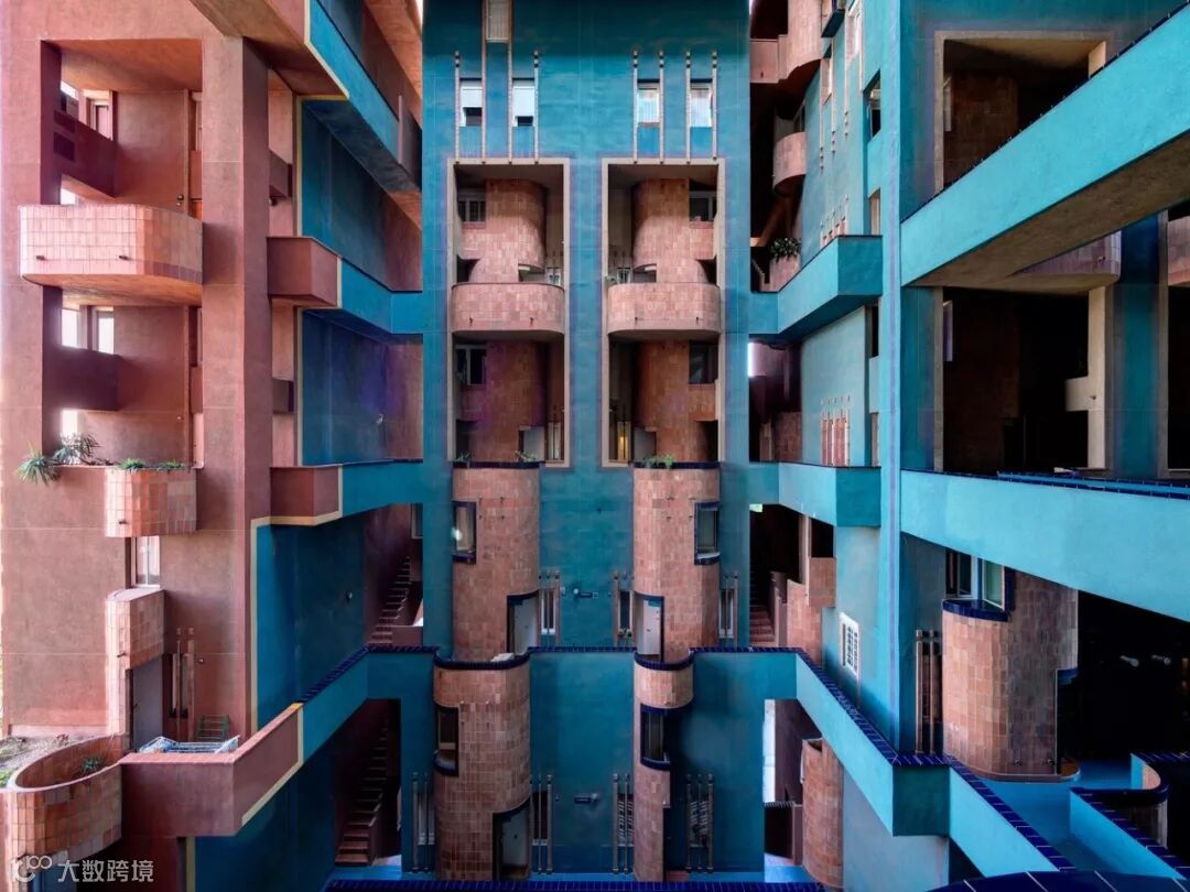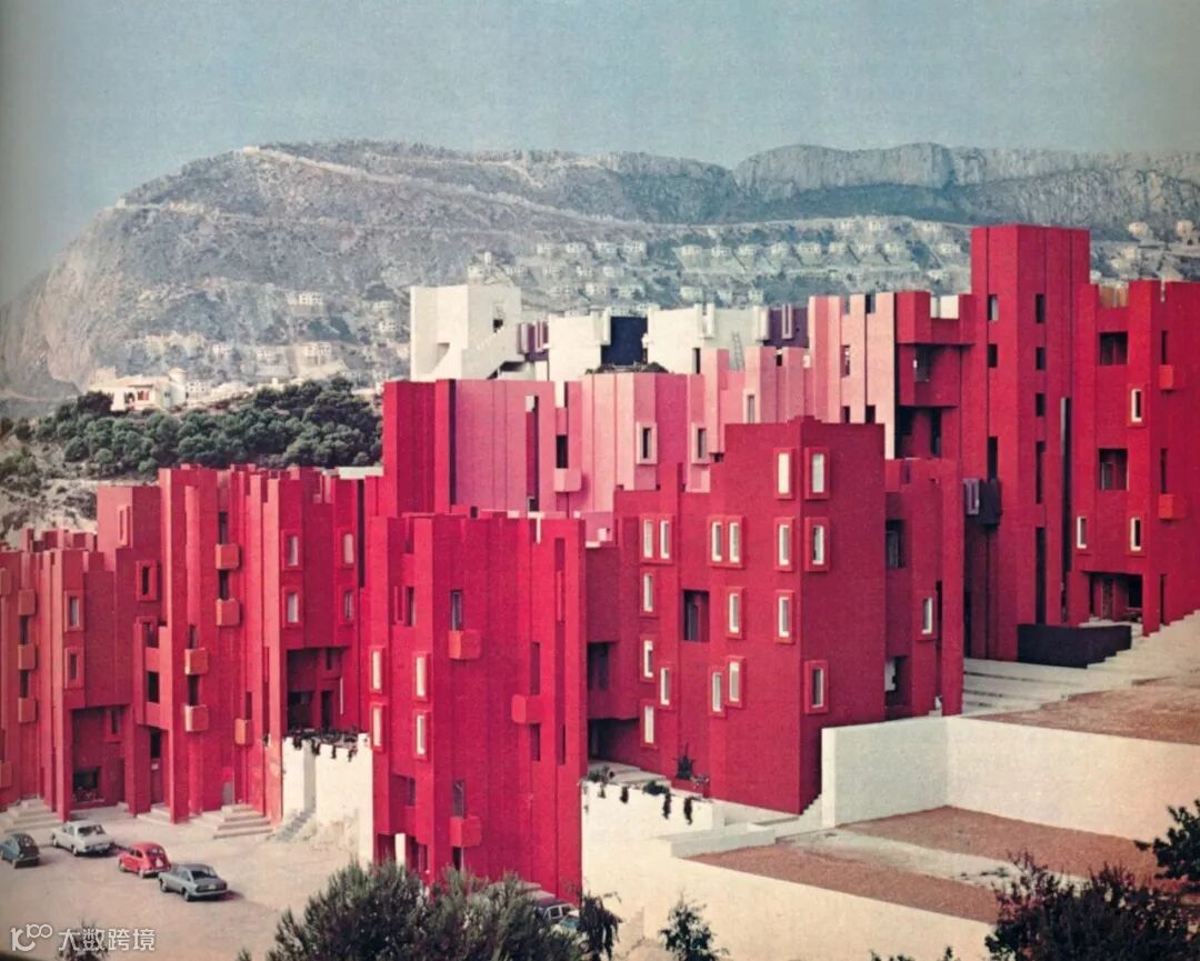 La Muralla Roja(“红墙”)从西班牙 Costa Blanca 的 Calpe 岩石悬崖上拔地而起,可能是他最惊险的作品。与“瓦尔登7号”有着明显的相似之处,La Muralla Roja 是一座雄伟的城堡般的建筑,隐藏着令人眼花缭乱错综复杂的彩色走廊、开放楼梯、公寓和户外空间。