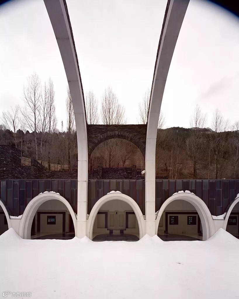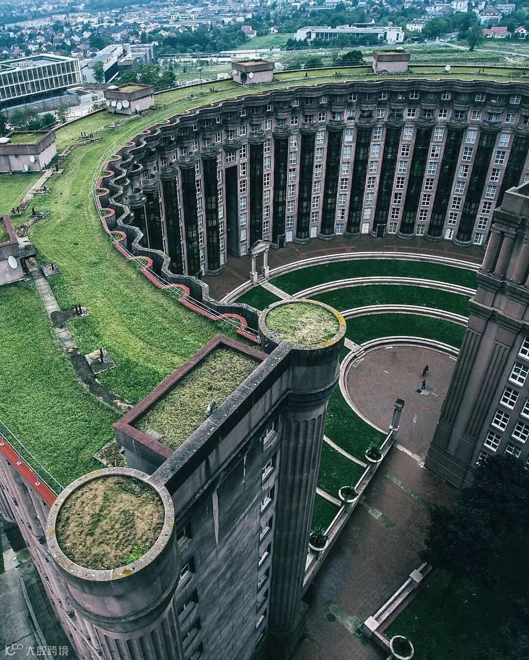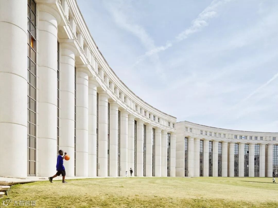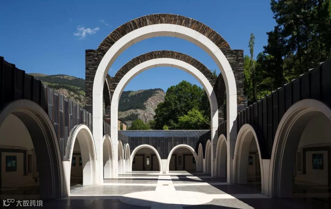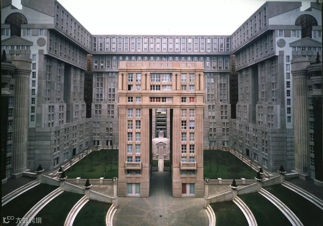 通过将传统的罗马式建筑与现代建筑技术和设计巧妙地融合在一起,Bofill 表达了他对比利牛斯山脉建筑遗产和景观的尊重,同时也大胆地走向了更创新的方向。其结果是一座美丽绝伦的建筑。传统的石头和黑色石板,被重新配置成现代的,极简主义的形式。它们简洁的几何线条偶尔会被打破,形成一种和谐的白色拱门,映射出教堂山腰背景引人注目的曲线。 04Les Espaces d’AbraxesYear: 1982Location: New Town of Marne La Vallée, Region of Paris, France