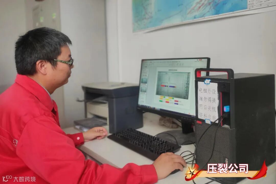 郭绍安,压裂公司压裂酸化技术研究所设计组组长,在威 202H73 平台的页岩气施工现场,正全神贯注地盯着电脑屏幕,结合地质参数,查阅邻井资料、历次作业等资料,以单井压裂设计参数为指导,做好每一段施工分析,一串串数据印在他厚厚的镜片上,折射出斑斓的光。按照“一井一案、一段一策、一层一总结”的要求,他为压裂井量身定制施工方案,并且根据施工数据变化,动态调整施工参数,为压裂施工提供了有力的技术支撑。