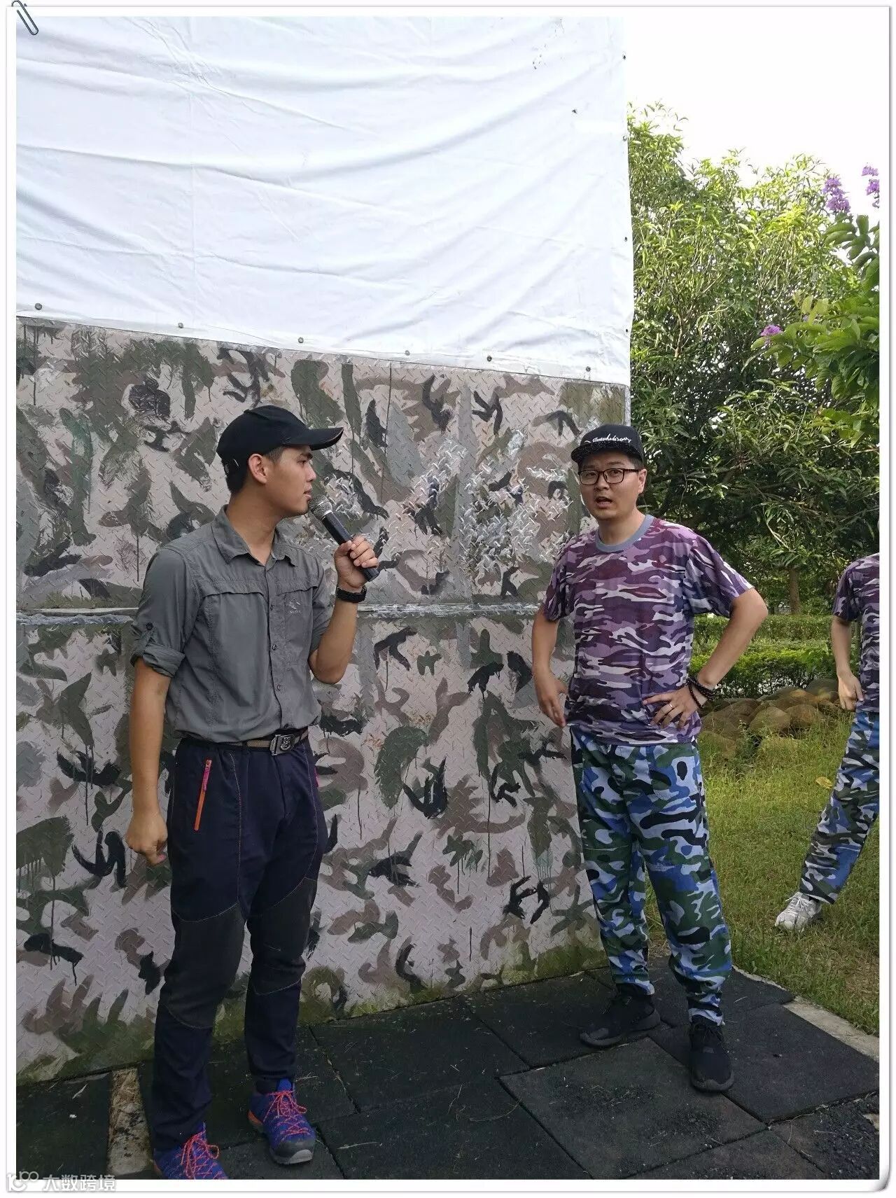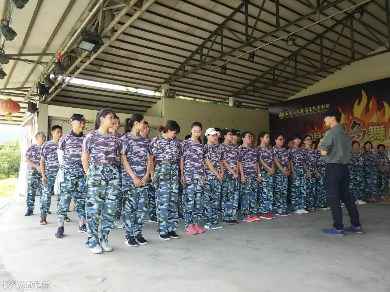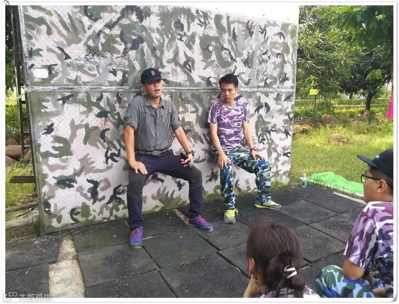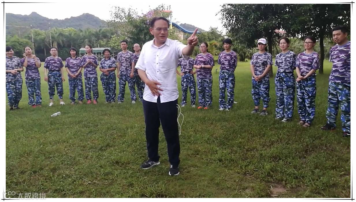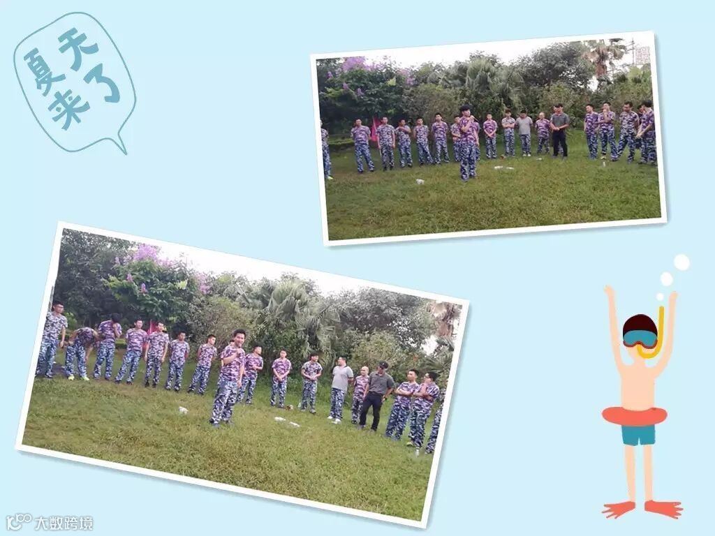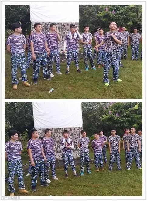 吃完午餐,稍作休整,大家驱车前往下一站---户外拓展训练基地。此时,火辣辣的太阳炙烤着大地,迎面吹过的风都是热乎乎的。教练已经在场地等我们,大家听从教练安排统一换好迷彩服,开始展开训练。