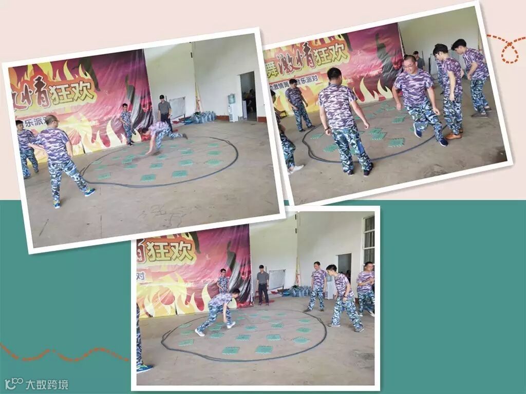 第一个项目是无轨列车,让两根长木头在7名小分队成员的脚底下“走”起来,最先到达终点线的小队就是胜利者。第一轮时每个小分队都喊着自己不同的口号,以口号来统一步伐。第二轮时,难度增加,教练要求每个小队不能发声,这是对团队默契的更大考验。“无轨列车”强调步伐一致,如果有一位组员没做好,就会导致整体队伍的停止,正如在工作中积极的因素会让团队运作良好,但倘若有消极的因素,这将对团队带来很大的打击。