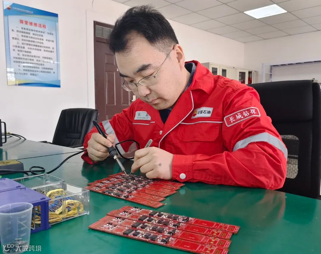 传统的海蓝MWD探管是五块电路板分布在骨架两侧,影响维修效率。钻井技术服务公司随钻测量与控制技术研究所研发组将骨架设计制成单侧开槽,五块电路板合并为一块。这一块2*20cm的小小电路板把电路集成的更紧密,降低了因飞线焊接点虚接、破损导致的风险,增加了探管整体稳定性和可靠性。
