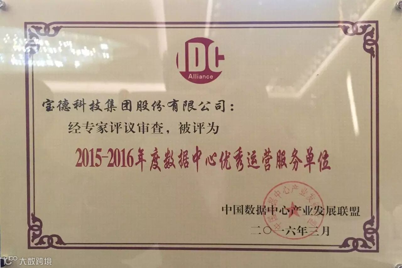 中国数据中心产业发展大会(简称DCIC大会)是最具影响力的数据中心行业会议之一。2016年3月23日,第六届中国数据中心产业发展大会在北京召开,宝德科技集团被评为“2015-2016年度数据中心优秀运营服务单位”。