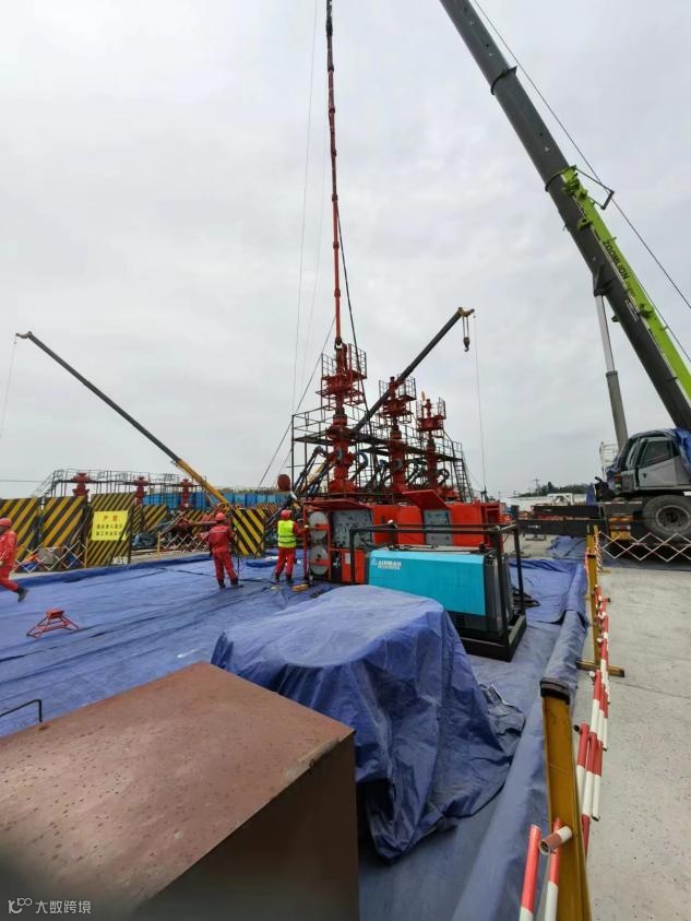 组装工具串,等待第15段泵送。将工具串连接桥塞适配器,装上推筒,并将整体送入防喷管,后用吊车将防喷管立起来下放工具串安装桥塞,桥塞安装完成后将防喷管移致井口。