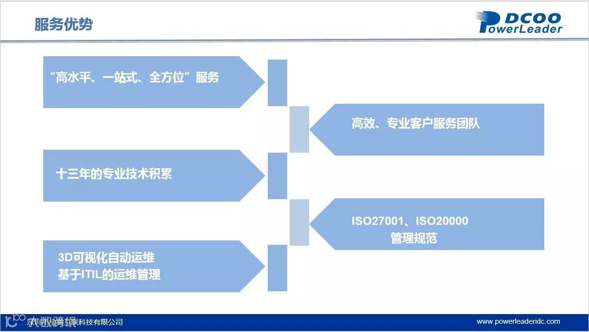 宝德运维服务(简称:DCOO)是宝德科技集团旗下的全新子品牌,是国内领先的数据中心基础设施综合维保服务提供商,我们立足中国,服务大中华区和全球市场,为数据中心提供“一站式”基础设施综合维保服务,构建敏捷高效的IT环境。