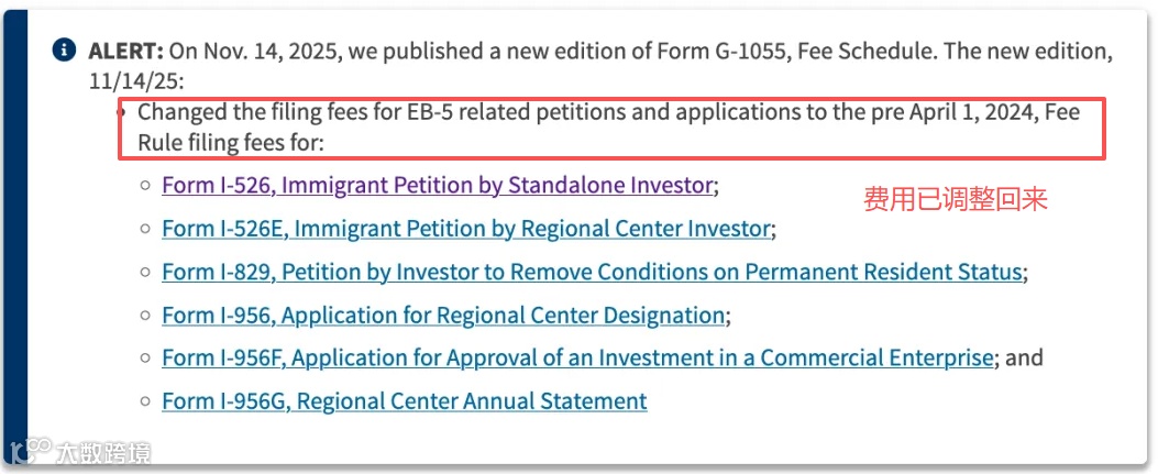 此外,还新增了95美元的技术服务费,用于支持EB-5系统电子化与数据化管理。