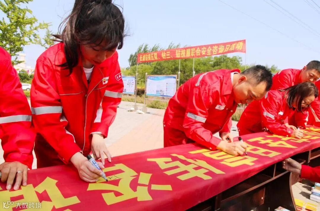 紧扣活动主题,突出安全生产、应急救援。公司采取安全咨询、安全宣讲、发放安全宣传单等方式,向员工宣传新版《安全生产法》、消防知识和“意识+责任+标准化”安全管理体系。参加活动的干部员工还在印有“人人讲安全 个个会应急”的横幅上进行安全承诺签名。