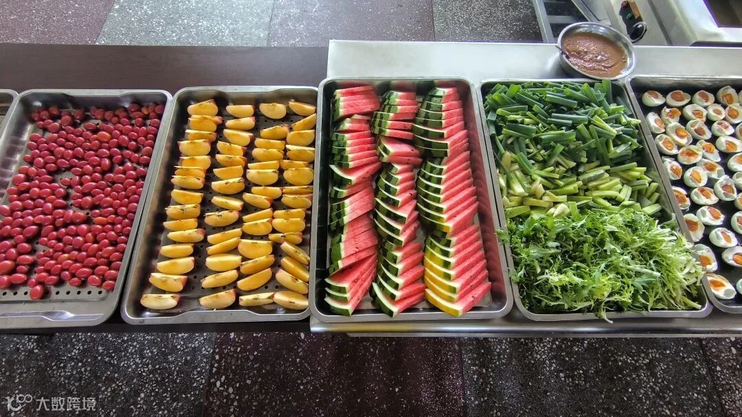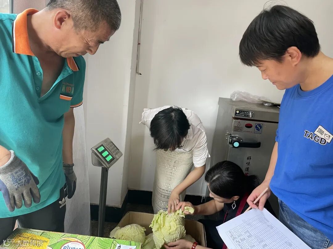 中心每月召开伙委会,对伙食的质量、口味等情况进行调查了解,并根据员工意愿随时进行调整。基地统一调整菜单,每餐配备酸梅汤和绿豆水,水果以西瓜为主,主食增加了高粱米水饭和过水面条,搭配蘸酱菜和多种时令绿叶蔬菜,为夏送清凉添砖加瓦。