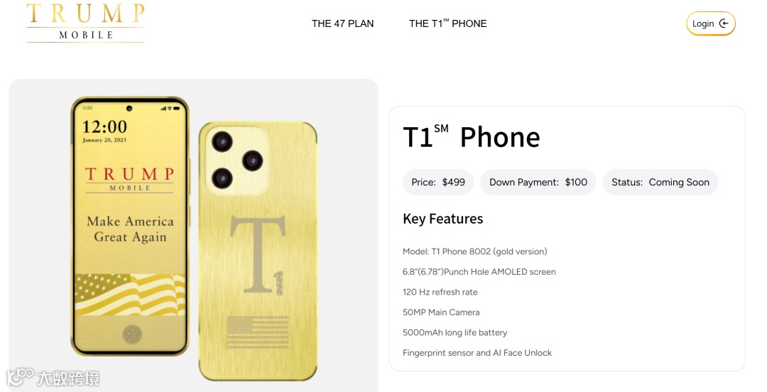 卖499美元的T1手机,简直是把政治营销玩到了极致。6.78英寸的大屏循环播放MAGA口号,金色机身镶着美国国旗。