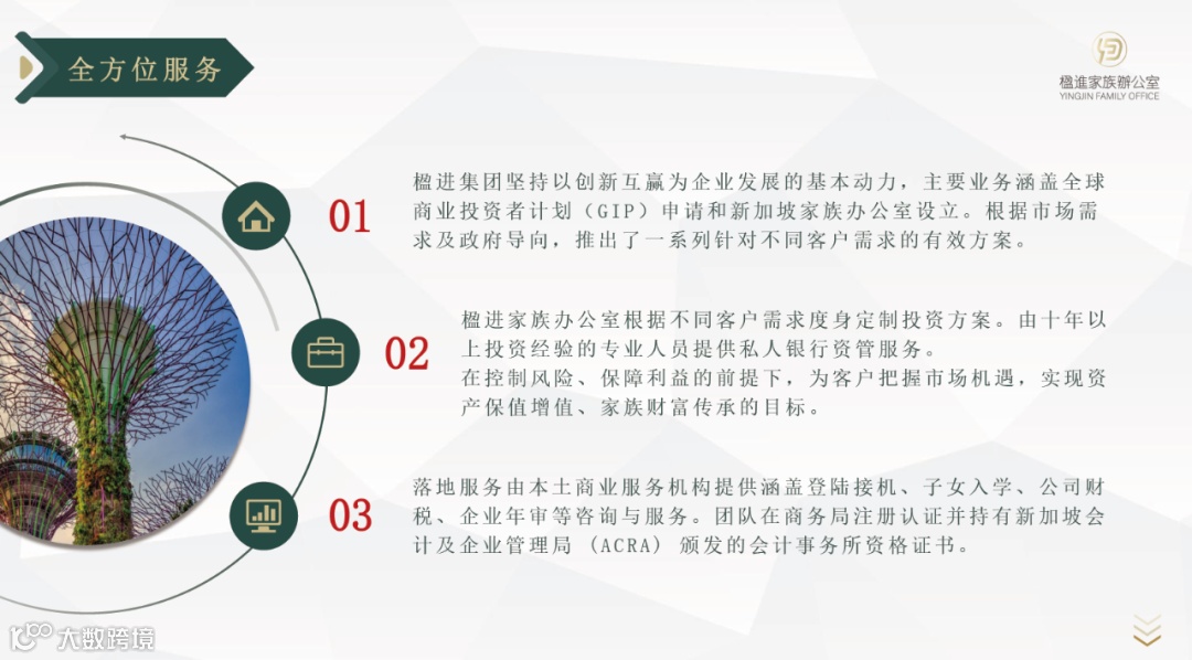 我们始终坚信,真正的财富传承,始于一个明智的战略选择,成于一个可靠的专业伙伴。楹进集团愿以全球视野与本土智慧,助您在新加坡这片稳健的土壤上,筑牢家族百年基业,实现财富、身份与价值的和谐统一。