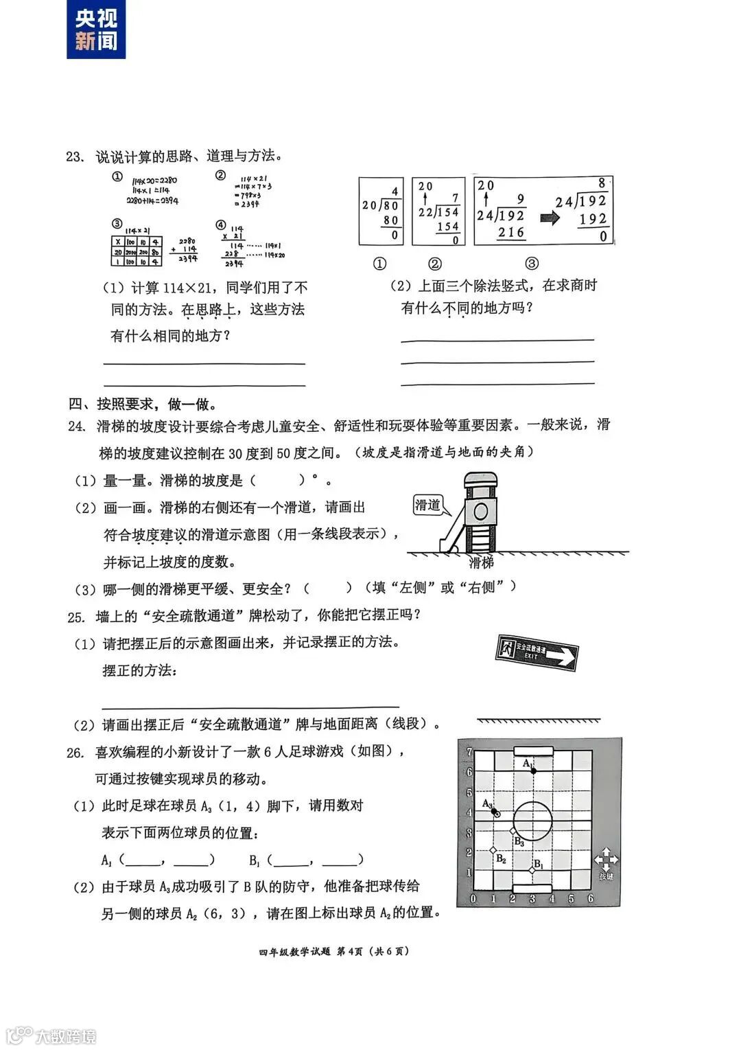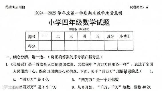 近日,深圳南山区一张小学四年级的数学期末考试试卷在网络上引发了广泛关注和热议。