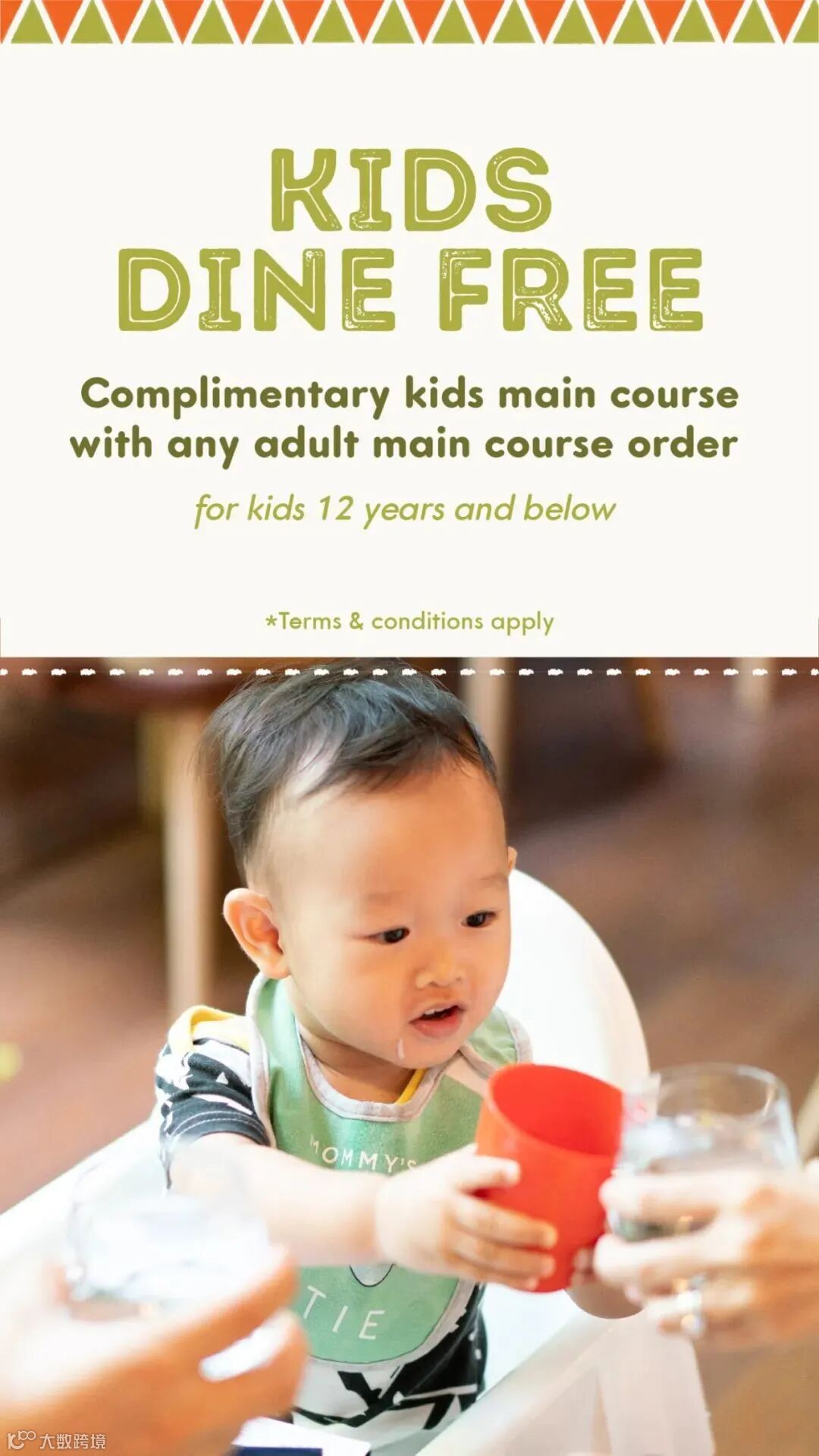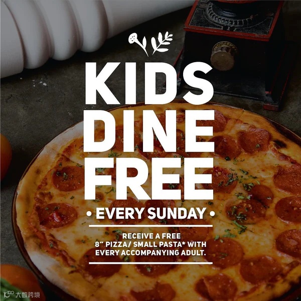 计划一次健康的家庭早午餐吧!每桌点至少两份主菜,12岁以下的孩子们将获得免费餐点,比如美味的玛格丽特披萨或番茄意面,每桌限兑换一份!