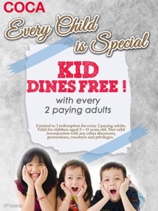 泰式中式融合火锅。为庆生的小伙伴和11岁以下的孩子提供免费儿童餐。这项优惠仅限常规自助餐,且需有两位付费成人陪同。快带上家人朋友,一起去COCA庆祝吧!