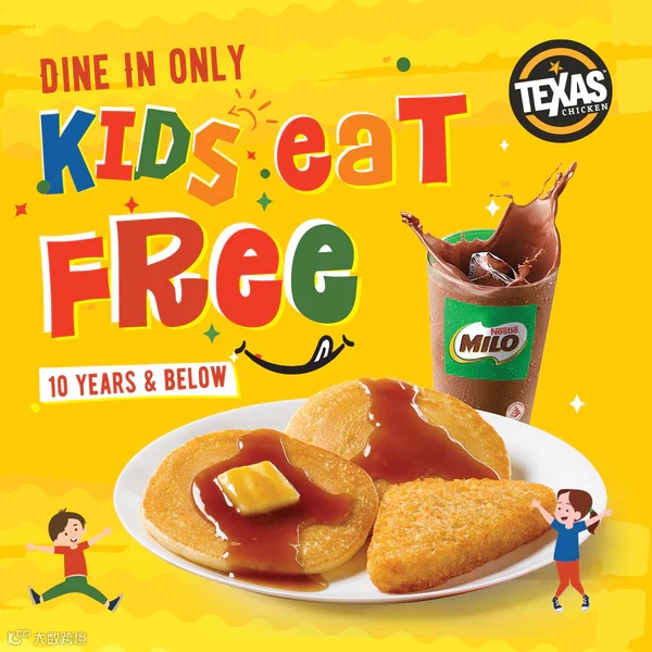 每周日上午8点到11点,凡购买常规早餐套餐,就能免费获得一份Sunny儿童餐,适用于10岁及以下的小朋友。美味又划算,周末早起不烦恼!