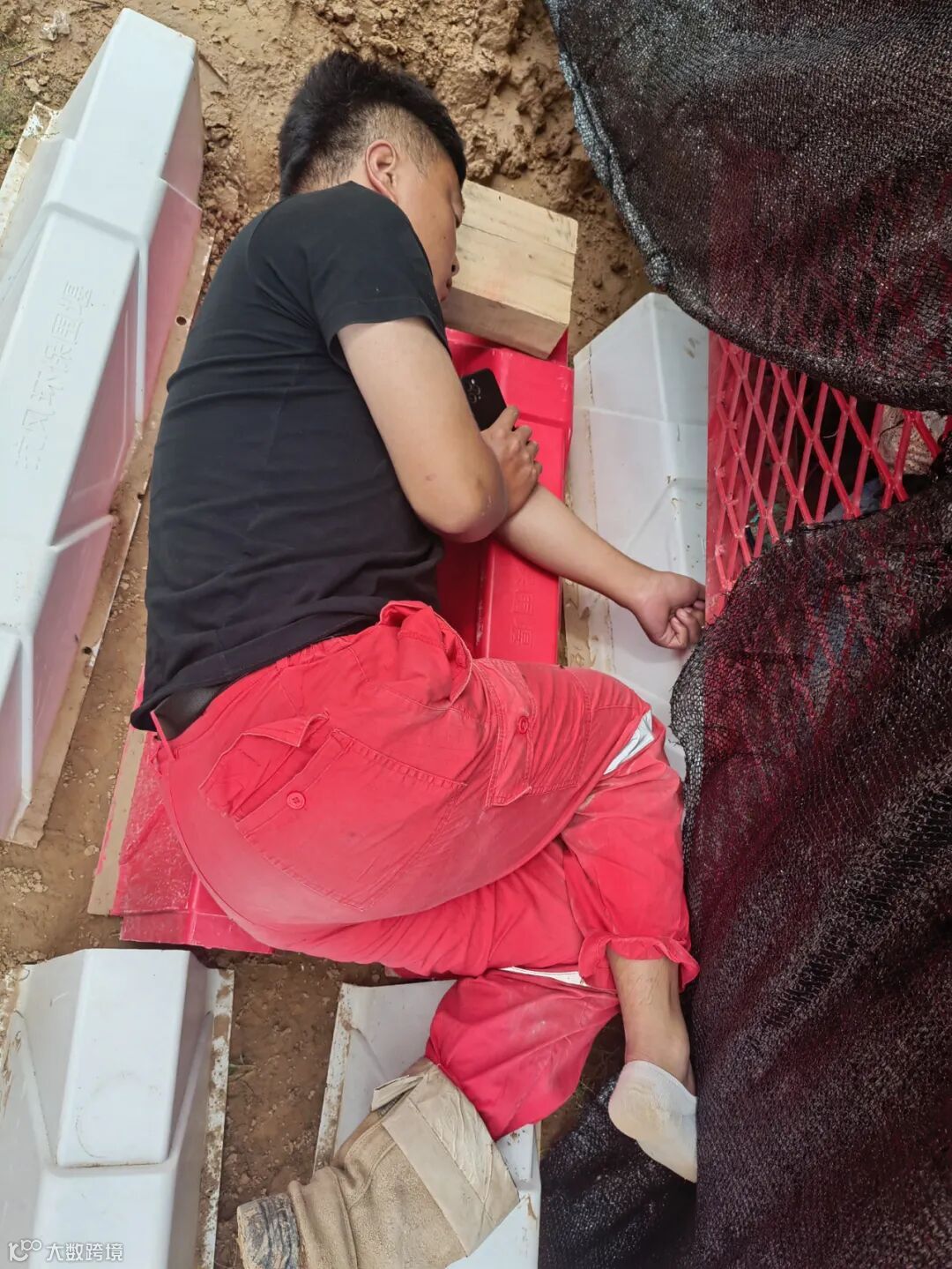 为加快施工进度,所有人员现场待命,等待储水量满足施工条件。原地休息了4个小时后,下一阶段压裂开始了。16日中午,历经两天一宿的连续作业,第六层压裂顺利完工,紧绷的神经在此刻松开,困意顿时袭来,大家躺在干爽的空地上美美地睡着了。