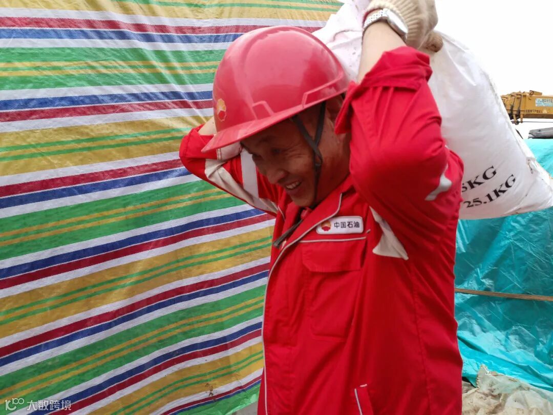 恰逢山西境内频繁降雨,为防止化工料受潮,大家决定将化工料重新码放铺盖好。数百袋化工料,堆积起来犹如小山一般。年近花甲的高师傅调侃了句“来活儿了,撸起袖子卸料。”豆大的汗珠从他黑黝黝的脸上往下流。他甩了甩酸痛的肩膀,脖子上的毛巾、工服早已被汗水湿透,工服后背泛着层层白霜,混杂着泥土粘黏在工服上。6个人仅用半个小时,便卸完了整整一车的化工料。