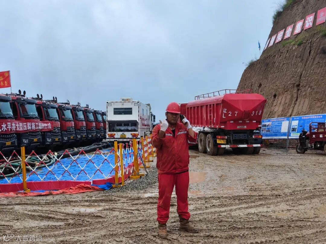 近期降雨频繁,临县境内砂罐车往返必经的山路发生了不同程度的道路坍塌及山体滑坡,淤泥导致砂罐车轮打滑。大家用铁锹将干爽的泥土铺撒在车轮前,终于,所有车辆都安全准时抵达施工现场。