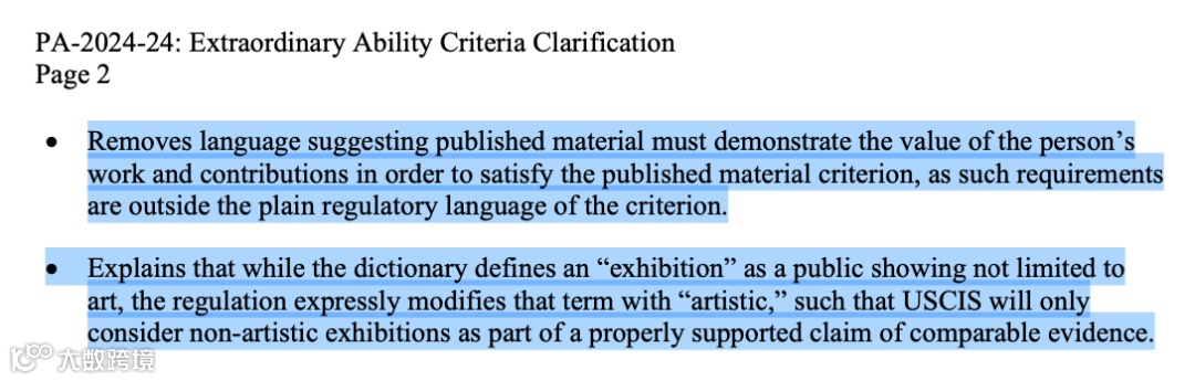 更新后好处:虽然非艺术展览(如科技展览、学术研讨会等)不会直接作为展览标准的依证据,但可通过其他形式的证据来满足相应的要求。该条款强化了根据申请者所在具体体领域量身定制证据的重要性。