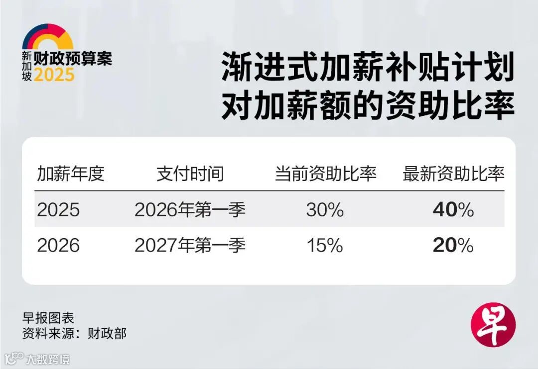 具体来说,政府将把2025年对加薪额的资助比率从30%提高到40%,把2026年的资助比率从15%提高到20%