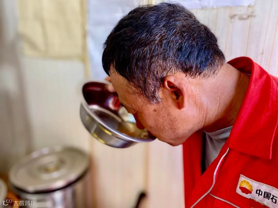钻井一公司70131队的钻工们就在享受着这样的享受。正当内外钳手脚不停地忙着起钻、副司钻检修泥浆泵、场地工站在烈日下坐岗、各路大班紧忙保养设备时,班车驶入井场,炊事班班长丁亮一边将饭桶和汤桶提入值班房,一边招呼众人“开饭啦”。众人放下手头的活儿走进值班房,第一时间就注意到了今天有2个汤桶。