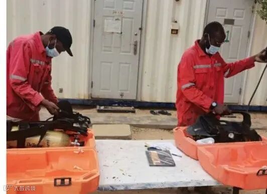 为提升当地雇员的安全素养,该项目结合现场作业特点,组织了这次安全生产知识擂台赛。即把雇员们分成两队,一队守擂,一队攻擂,面对面PK,双方在规定时间内争相回答主持人提出的问题。竞赛内容涵盖测试作业、消防安全、应急管理、环境保护、职业健康等,还有空气呼吸器正确穿戴等实操作业。