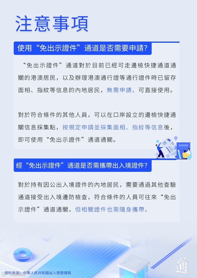 港澳居民和已经留存过面相、指纹等信息的内地居民无需申请,可直接选择“免出示证件”通道。不符合这些条件的旅客可以在深圳湾口岸和拱北口岸的边检快捷通关信息采集点进行申请,并录入相关信息。