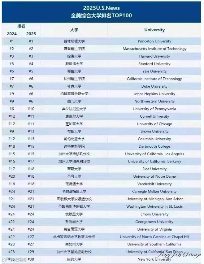 美国:U.S. News公布2024-2025年度美国大学排名
