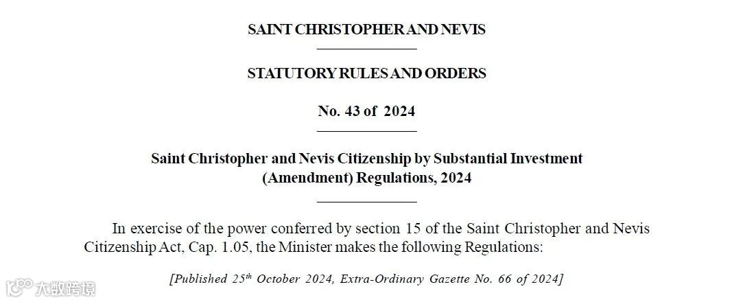 10月25日,圣基茨移民局CIU(Citizenship Investment Unit)的官方网站悄然发布了一份引人注目的公报——2024年第66号特别公报。这份公报不仅仅是一份普通的文件更新,它承载着对圣基茨公民法案的最新修订内容,标志着该国在移民与国籍政策上的又一次重要调整。